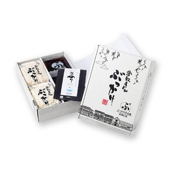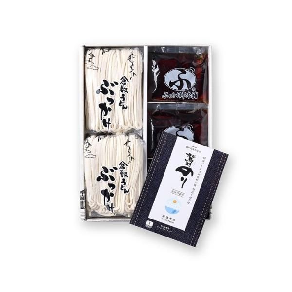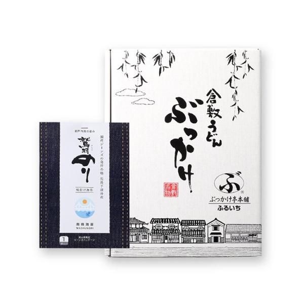 半生麺400g(3人前)×4、ぶっかけうどんのたれ100g×12、鷲羽のり(味付のり)ジーンズパッケージ(6切12枚)×1
