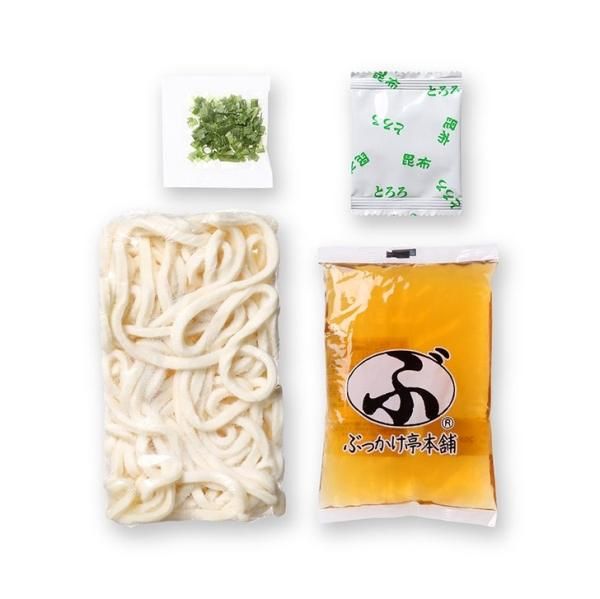 冷凍麺300g(1人前)・かけうどんのだし300g・乾燥ねぎ・とろろこんぶ×各12