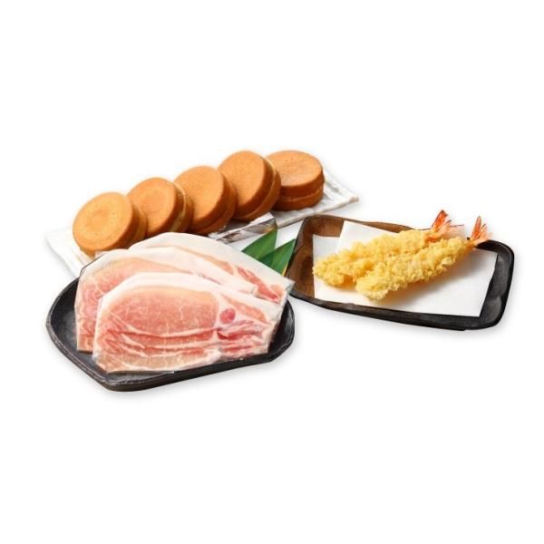 冷凍麺300g(1人前)×5、ぶっかけうどんのたれ100g×4(肉調理用予備1含む)、かけうどんのだし300g×2、美星豚の肉60g×3、えび天×2、ふーまん×5